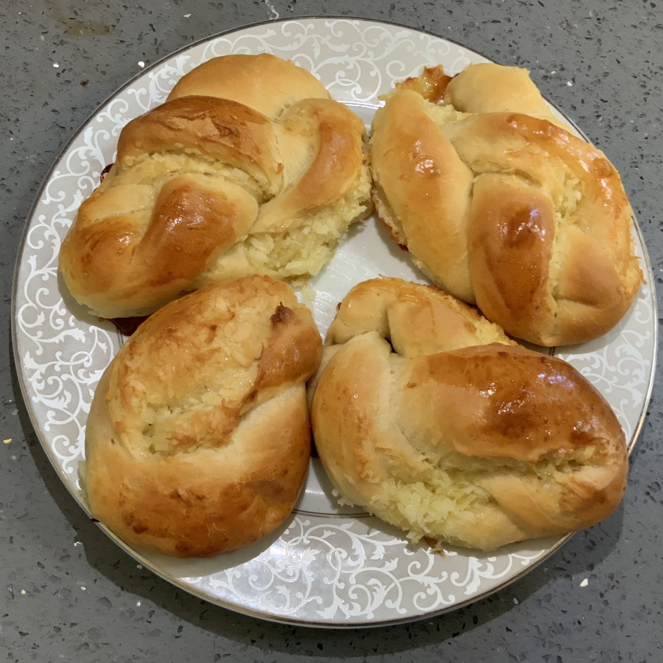 the bun into a very thin oval, or as thin as possible. Then there are several shapes you can make like a heart, a knot, or a braid! Do this with all the dough balls.